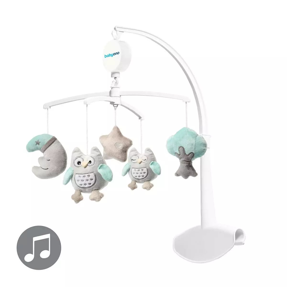 <p><em></em><em></em><em>Це універсальна музична карусель для ліжечка - це ідеальний продукт, який допомагає вашій дитині легко заснути. Маленькі доброзичливі сови, дерево, зірка і місяць привернуть увагу дитини, а звук музичної скриньки допоможе дитині заспокоїтися. За допомогою спеціально розробленого тримача мобільний можна прикріпити до доріжки та дерев'яної ліжечка.</em></p><p><em><br></em></p><p><span></span></p><p><strong>ВЛАСТИВОСТІ:</strong></p><ul><li><em>дає можливість спостерігати за постійним рухом предметів, тим самим розвиваючи відчуття зору</em></li><li><em>стимулює слух та уяву дитини</em></li><li><em>заспокійливий звук музичної скриньки допомагає приспати дитину спати</em></li><li><em>нескладний, простий у монтажі:</em></li></ul><p><em>A) дитячі ліжка - підходить для всіх ліжок BabyOno та більшості ліжок для подорожей, доступних на мар-кеті<br>Б) дерев’яні ліжечка - товщина поруччя дерев’яної ліжечка не повинна бути менше 2 см і не може перевищувати 2,7 см</em></p><strong>ХАРАКТЕРИСТИКА:</strong><p><br></p><ul><li><em>Матеріал: мобільний - пластик, іграшки - поліестер</em></li><li><em>Розмір упаковки: ширина 37 см х висота 32 см х глибина 9,5 см</em></li><li><em>Вага: 0,62 кг</em></li></ul>