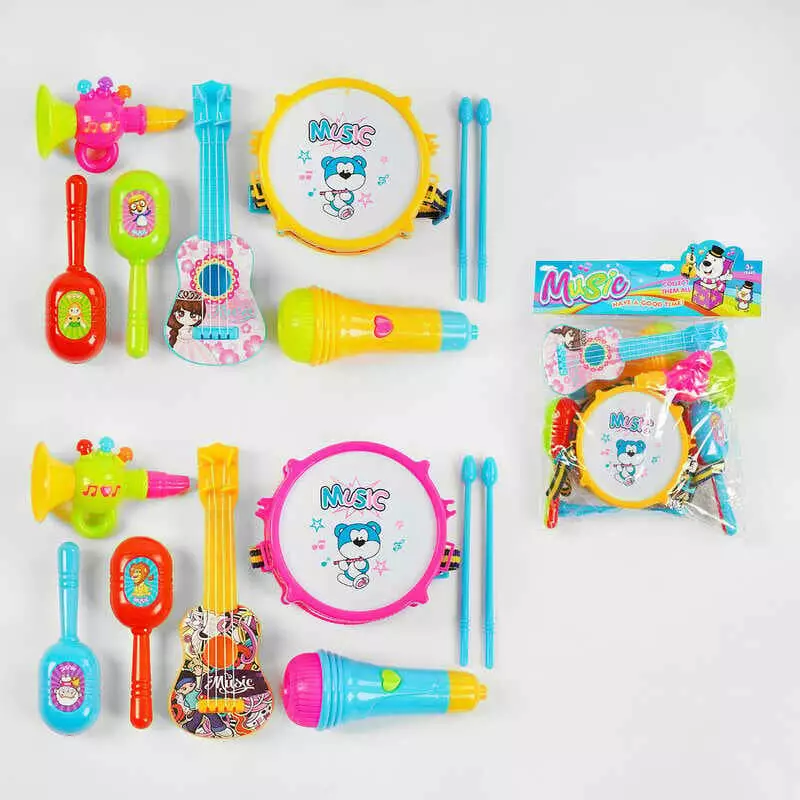 Музичні інструменти 5298-3 (96/2) 2 види, барабан, гітара, мікрофон, у пакеті