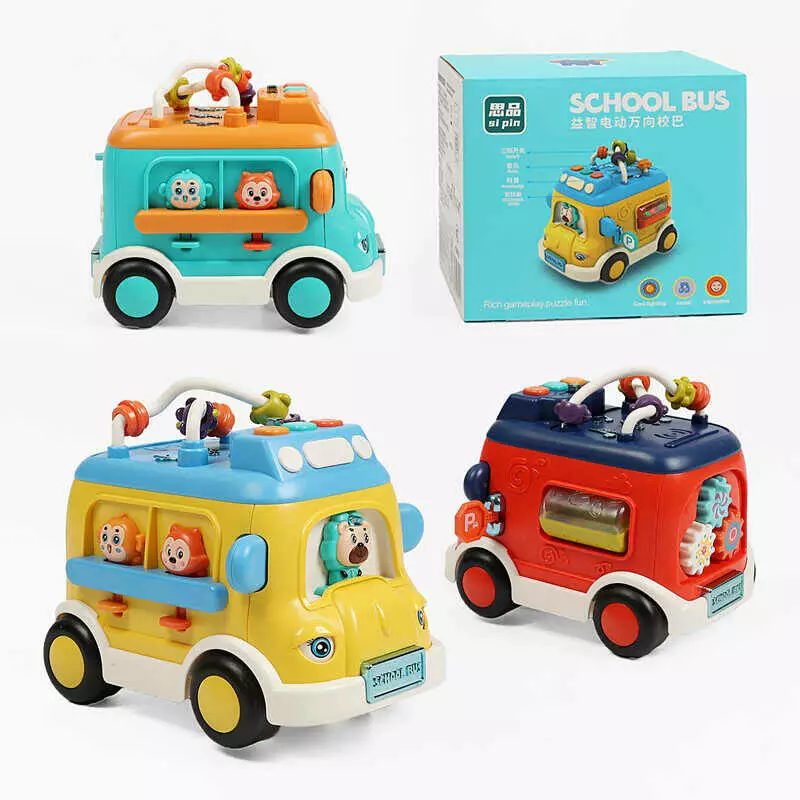 Музичний автобус 9809 C (60/2) 3 кольори, звуки, мелодії, колесо вільного ходу, 2 режими, світло, рухомі шестерні, в коробці, МІКС ВИДІВ