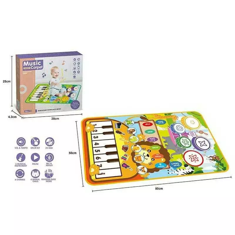 Музичний килимок MTK 035-1 A (72/2) на батарейках, музика, звук, музичні інструменти, запис, режим гучності,барабанні палич, розмір 80х50 см, в корбці