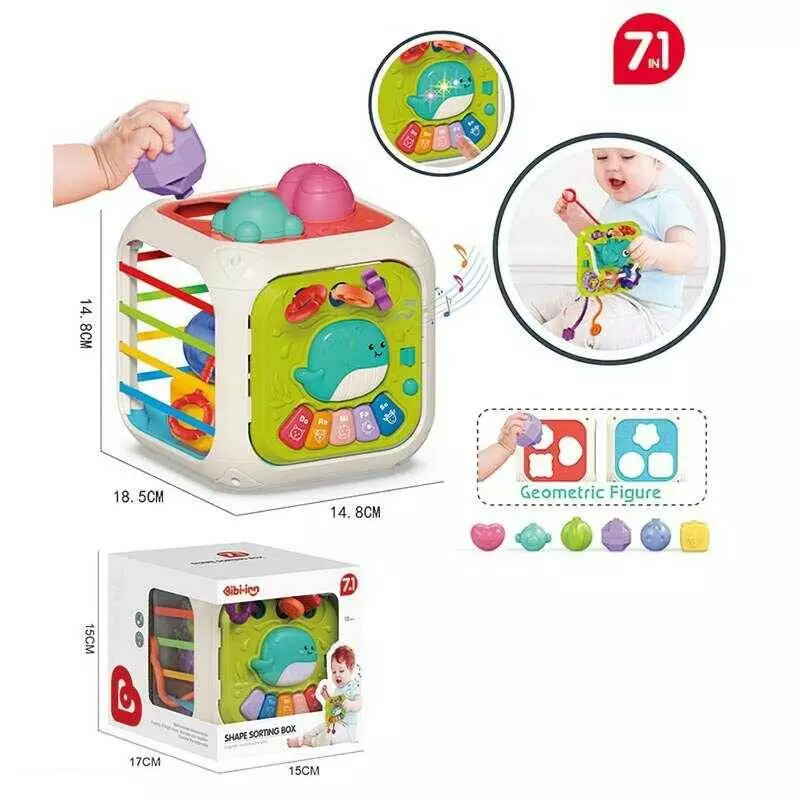 Музичний куб 688-87 (36) 7 в 1: піаніно, пальчикові ігри, брязкальце, сортер, рухомі шестерні, пірамідка, прорізувачі, мелодії, підсвічув., в коробці