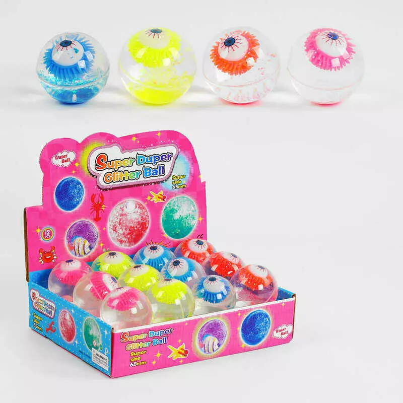М`яч стрибун C 56254 (12) ЦІНА ЗА 12 ШТУК В БЛОЦІ, підсвічування, око та блискітки