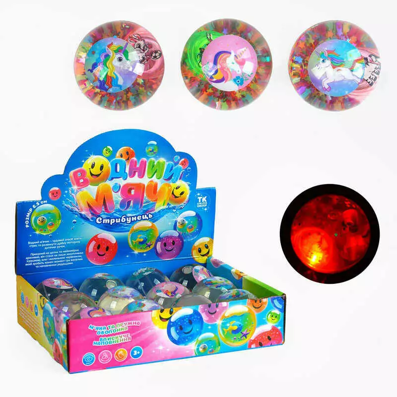 М`яч стрибун С 65461 (12) "TK Group", ЦІНА ЗА 12 ШТУК В БЛОЦІ “Єдиноріг”, блискітки, підсвічування, в коробці