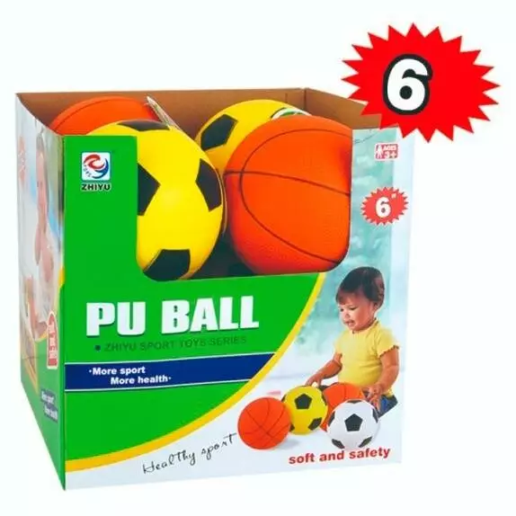 Фотография 1 товарной позиции интернет-магазина детских игрушек www.smarttoys.com.ua М'яч ZY132 фомовий, спортивний, кул., 8шт. (2види) в диспл., 30-30-30см.