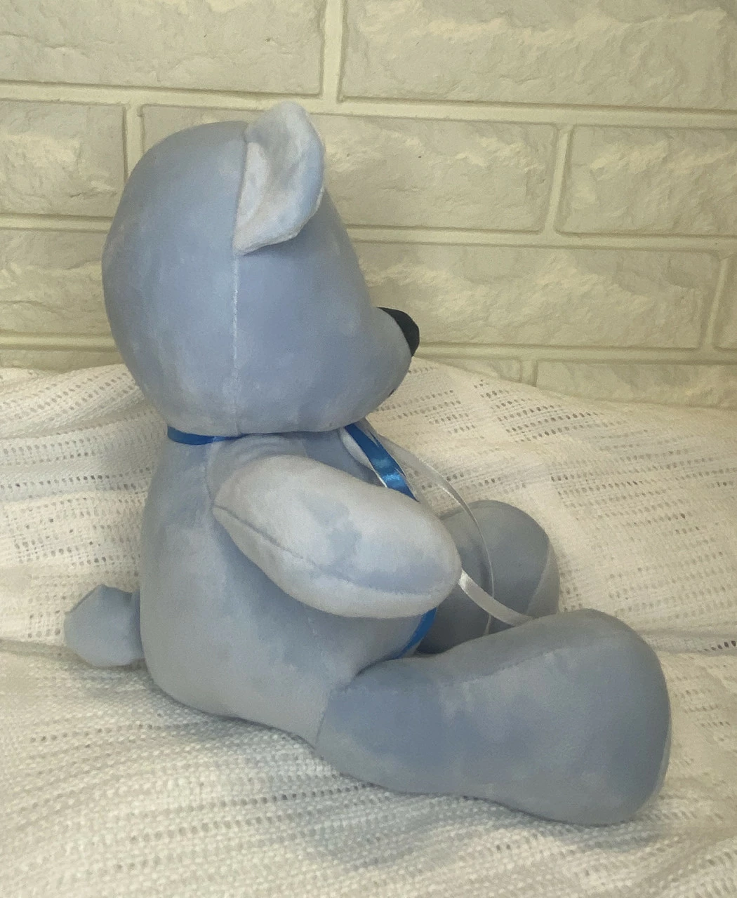 Игрушка изготовлена с качественных материалов, мягкая и приятная на ощупь. Голубого цвета. Размер 33 см.