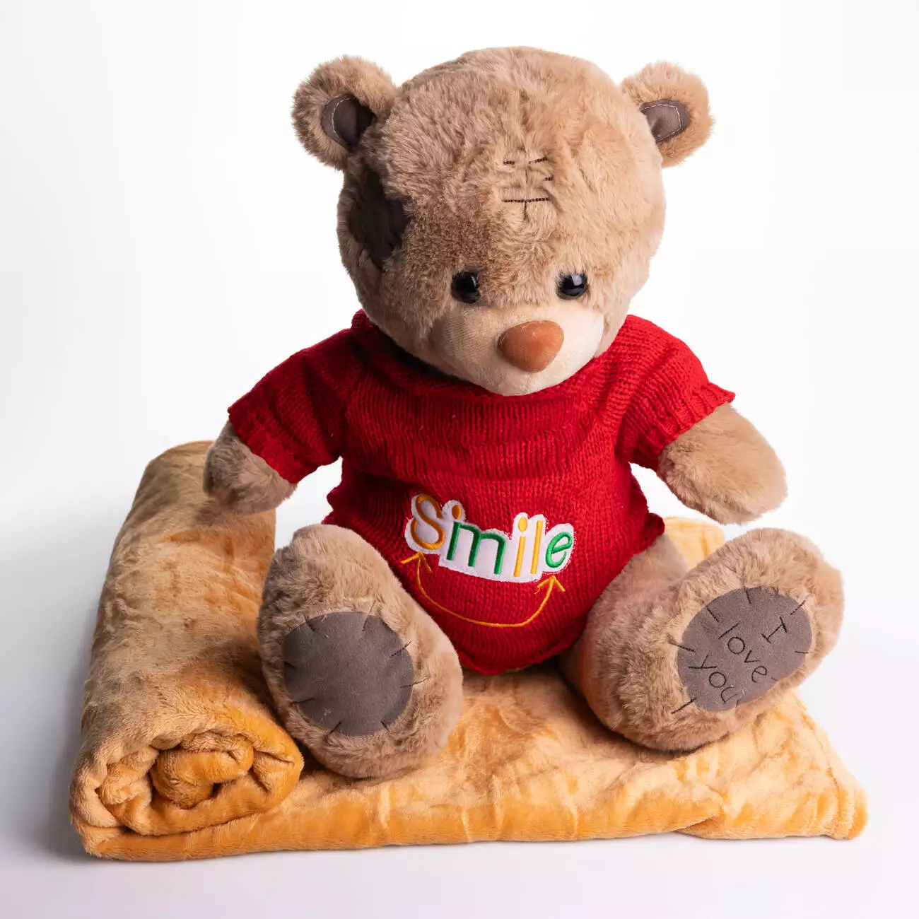 Ідеальний подарунок для дитини, стильний аксесуар для дитячої кімнати та незамінний супутник у подорожах. Це не просто м'яка іграшка, а функціональний набір, який дарує радість та тепло. Ведмідь стане вірним другом для малюка, а м'який флісовий плед зігріє прохолодним вечором.