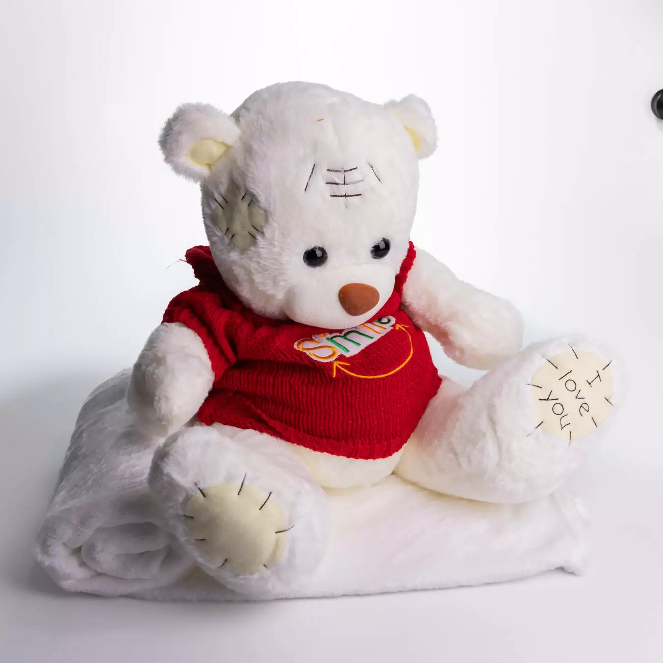 Ідеальний подарунок для дитини, стильний аксесуар для дитячої кімнати та незамінний супутник у подорожах. Це не просто м'яка іграшка, а функціональний набір, який дарує радість та тепло. Ведмідь стане вірним другом для малюка, а м'який флісовий плед зігріє прохолодним вечором.