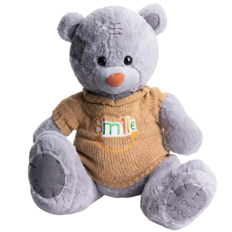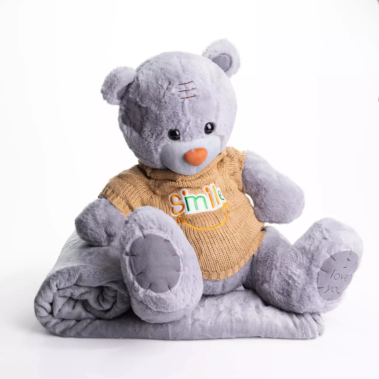 М'яка іграшка з пледом Ведмедик Тедді в коричневому светрі, сірий