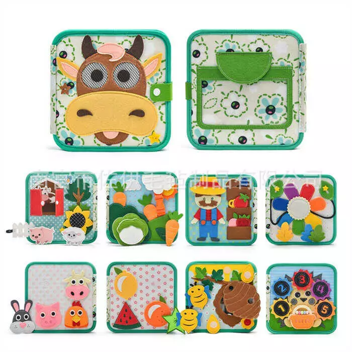 М`яка книжка - бізіборд C 75320 (36) фетр, намистини, прозора кишеня, цифри, елементи на липучках та кнопках, овочі, фрукти, комахи, в пакеті