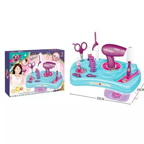 Фотография 1 товарной позиции интернет-магазина детских игрушек www.smarttoys.com.ua Набір аксесуарів KL3077 для волосся, підставка, бігуді, щипці, шпилька, фен,ножиці,кор.,34-24-7,5см.