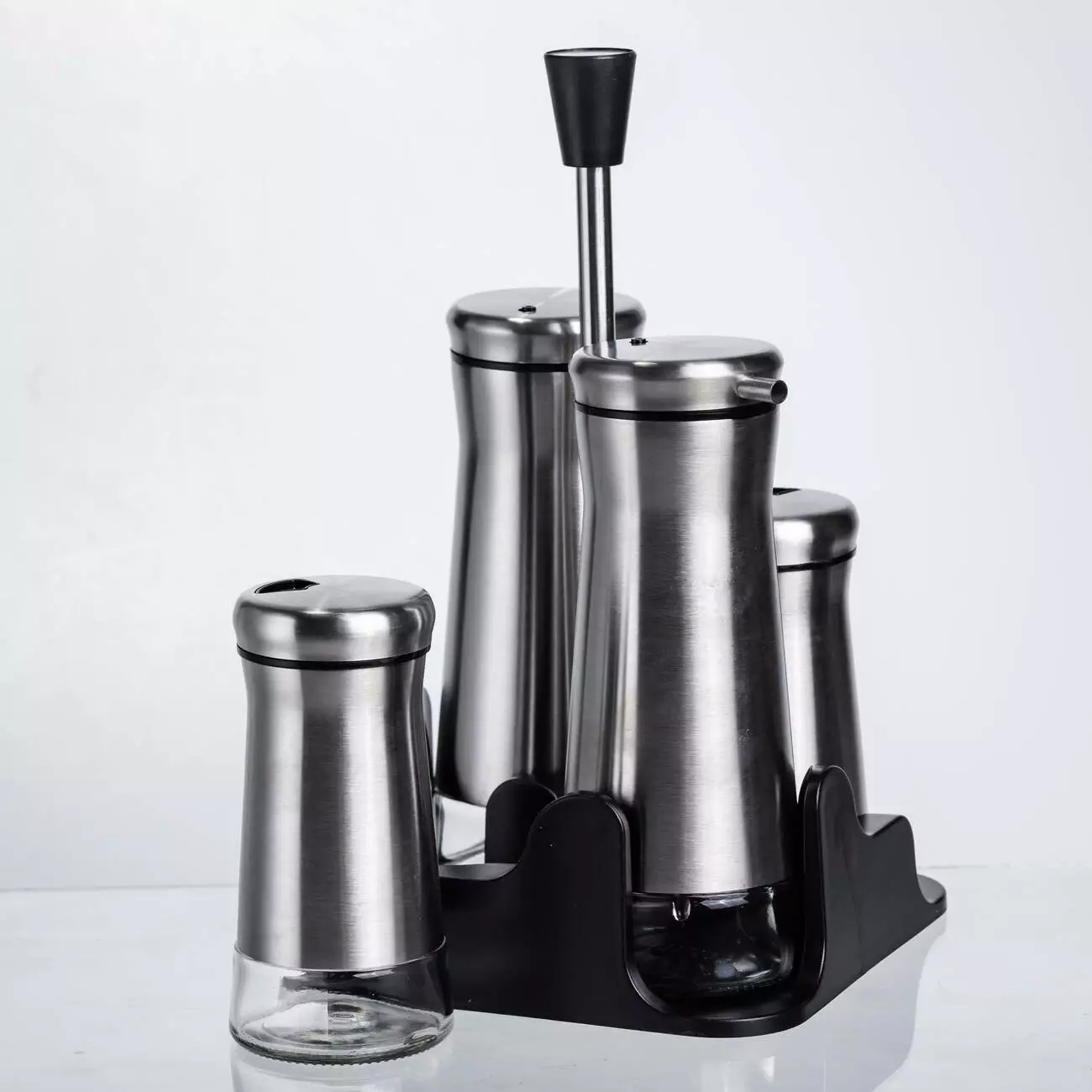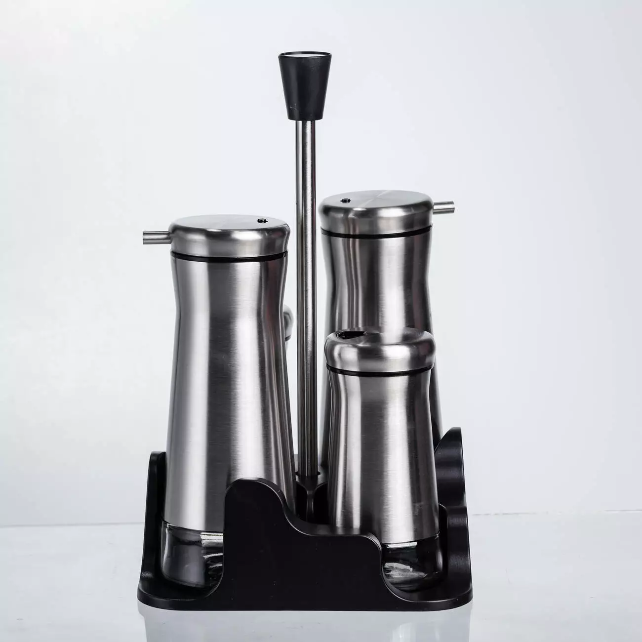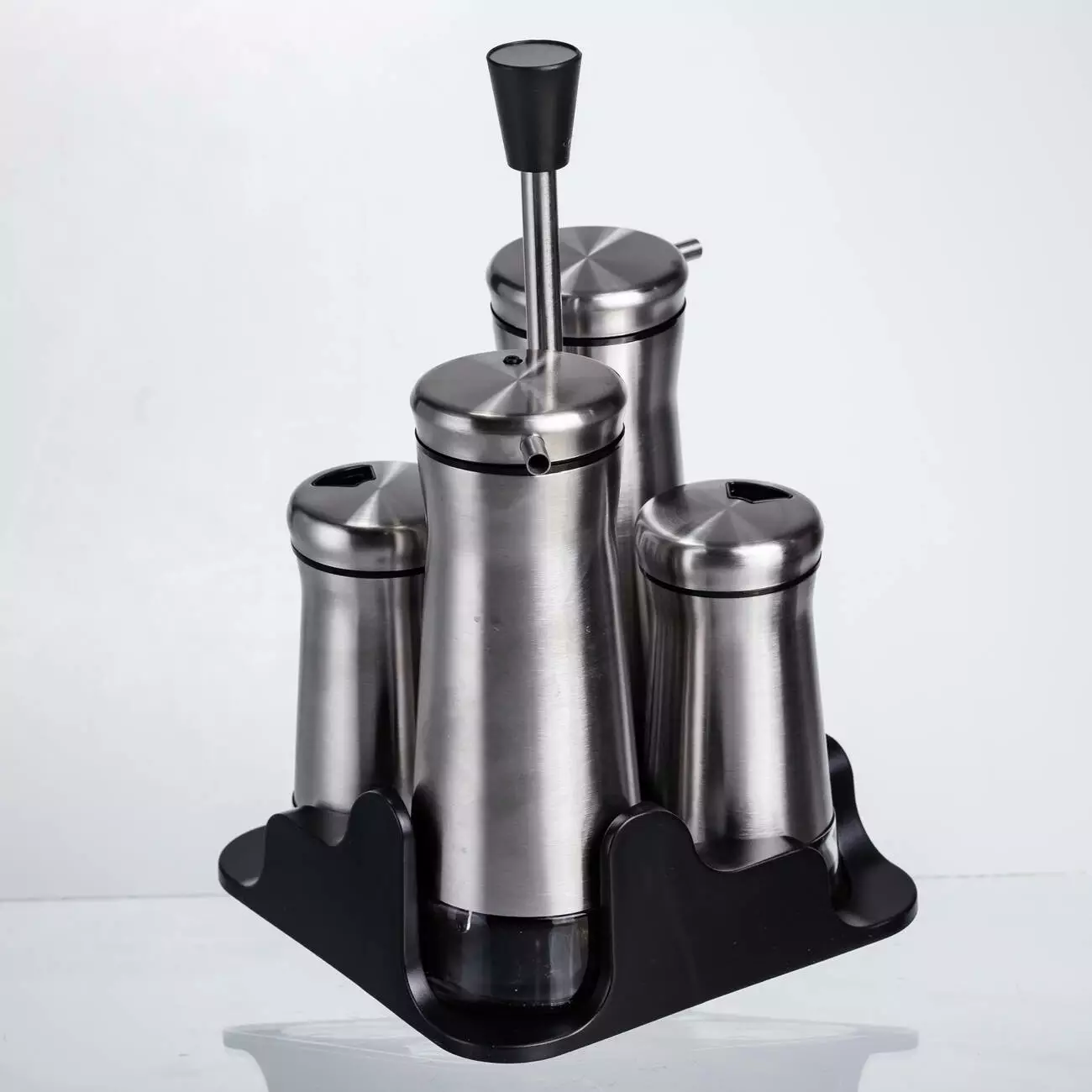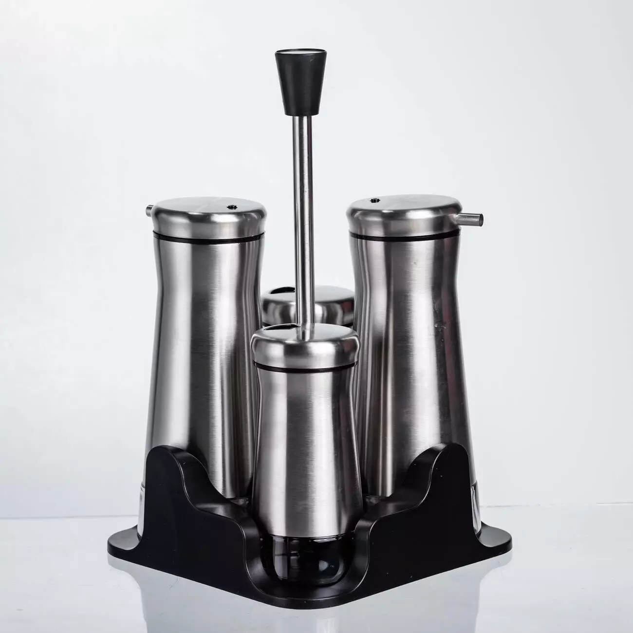 Набір баночок для спецій та рідких текстур 4 предмети на підставці, сталь