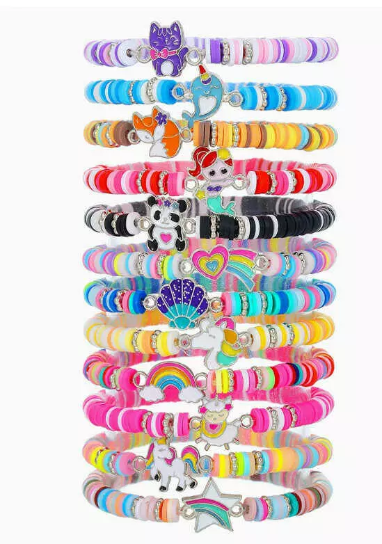 Набір браслетів C 73478 (230) 12 браслетів, гумові намистини, металева прикраса, еластична резинка, в пакеті