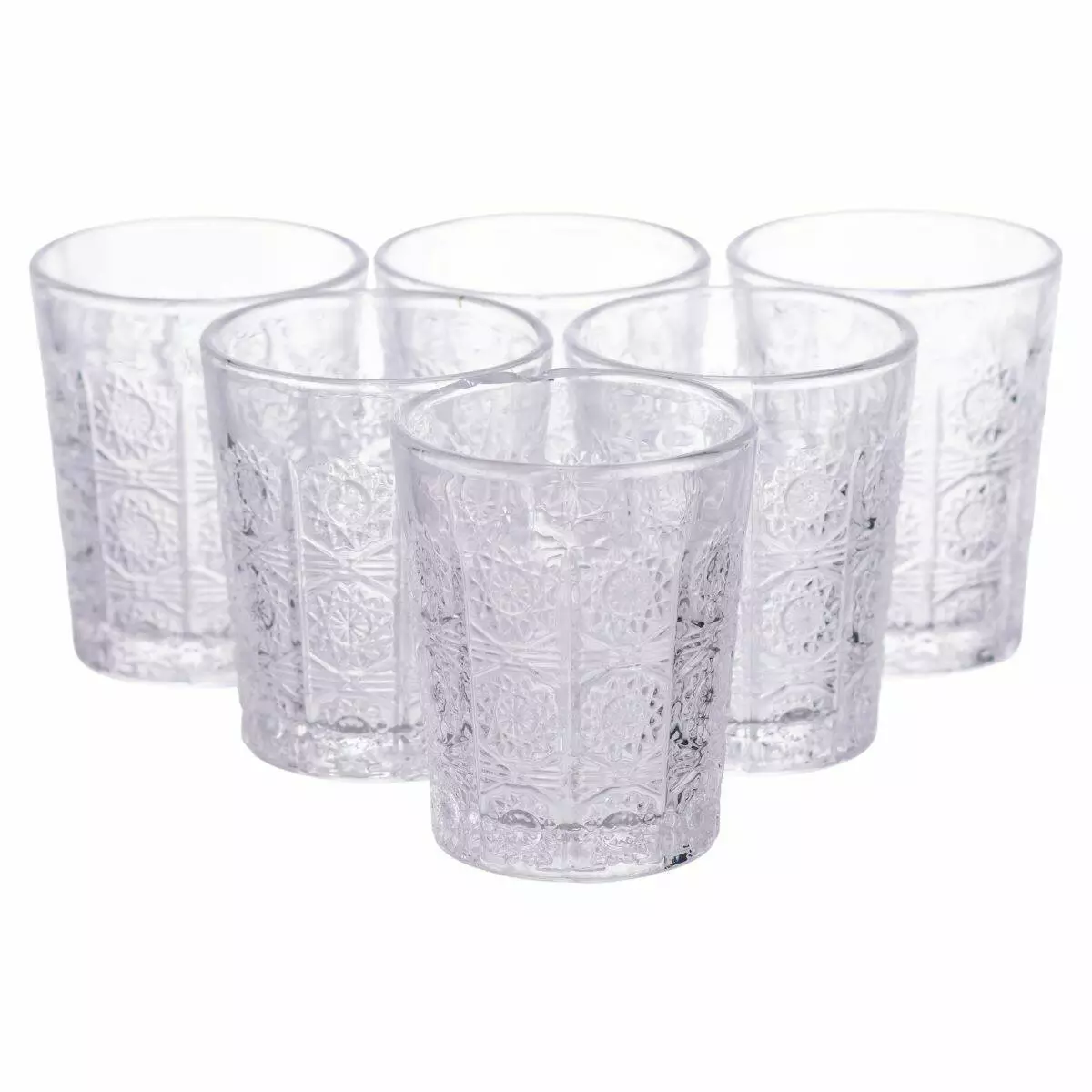 Набір чарок із товстого скла включає 6 штук з потовщеним дном, які підходять для подавання міцних напоїв. Завдяки компактним розмірам та щільній структурі кожна чарка зручна у використанні та має стабільну основу.