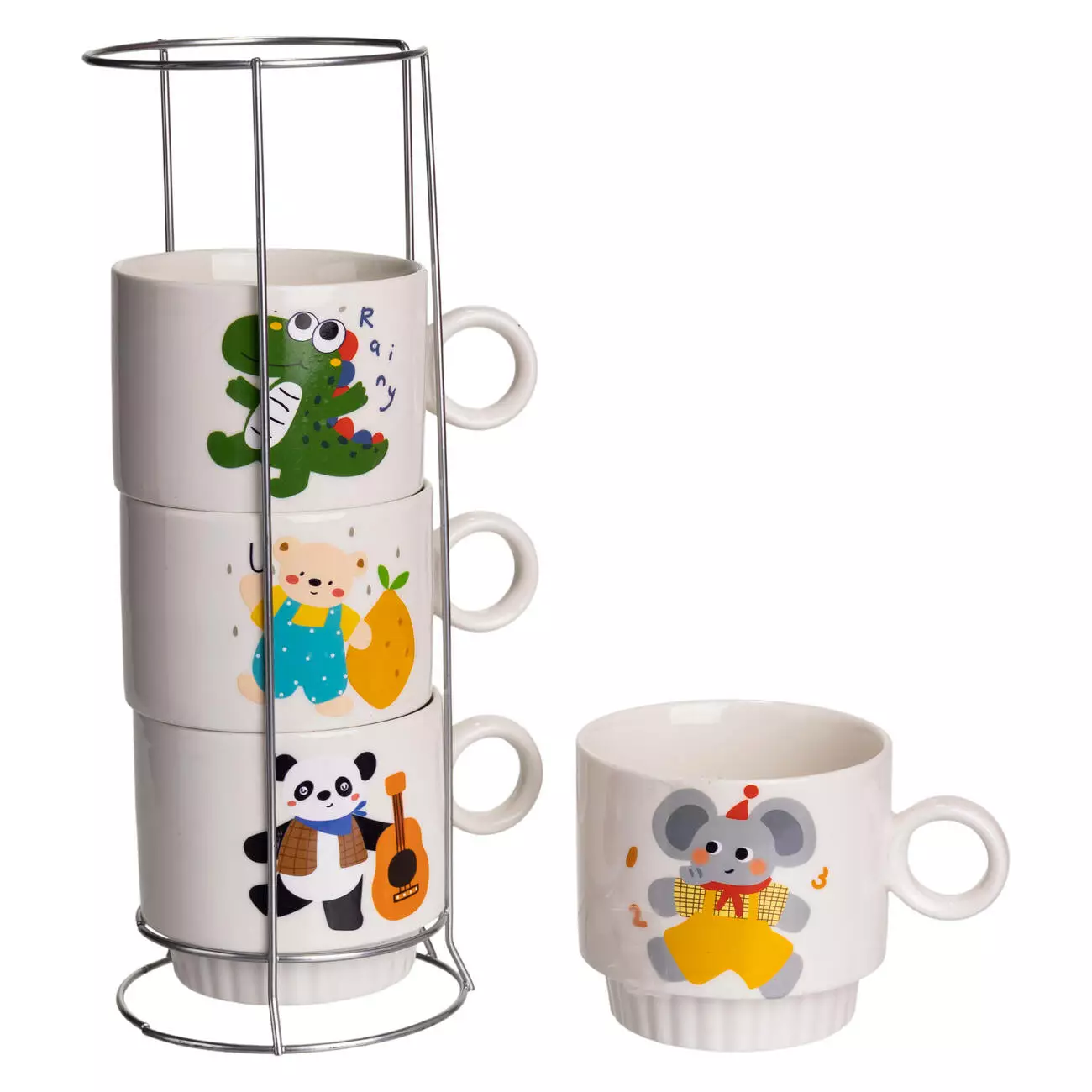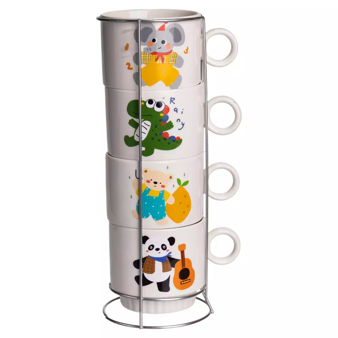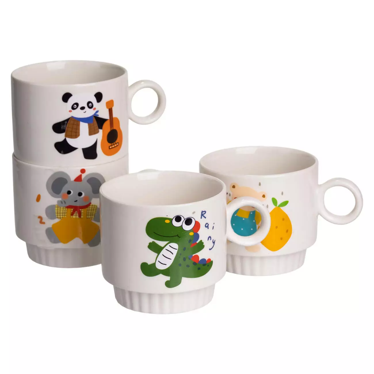Яскравий комплект порцелянових чашок з милими дитячими малюнками