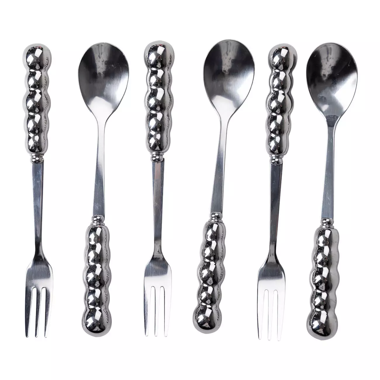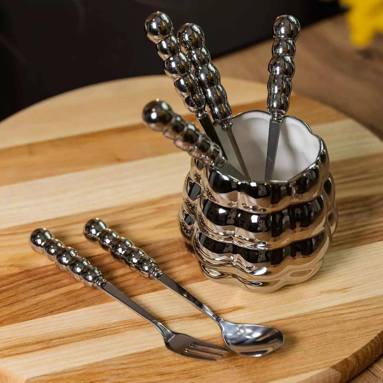Набір десертних вилок та ложок з порцеляновою підставкою, сріблястий