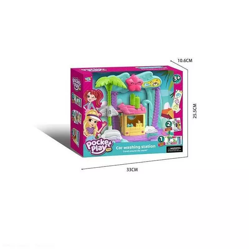 Ігровий набір K 040 (36/2) "Мийка", звукові ефекти, мелодія, підсвічування, із зірочки ллється вода, шлагбаум, 2 щітки, лялечка, в коробці
