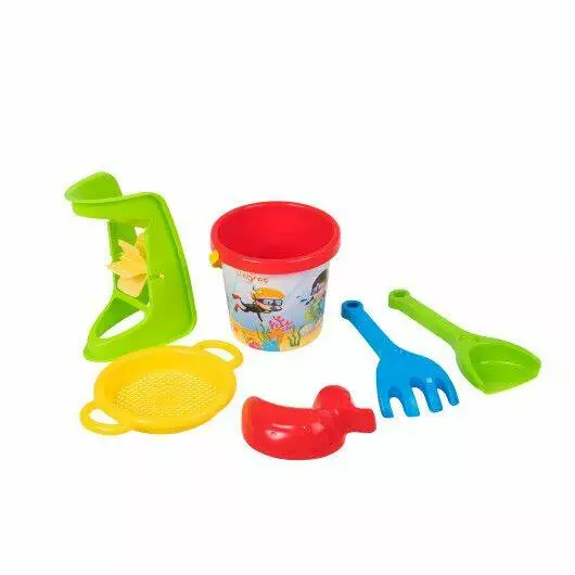 Набір для піску 6 ел 39638 створений в яскравому дизайні. Цікаві картинки нанесені на відерце з допомогою сучасної технології IML (In-Mould Labelling) і відзначаються винятковою довговічністю. Набір забезпечить захопливі ігри на пляжі або в пісочниці. Крім того, зручне і красиве дитяче відерце з круглою ручкою - універсальна іграшка на будь-який сезон, адже в ньому можна переносити кубики, іграшки та багато іншого. Набір виготовлений з міцних, якісних, стійких до погоди матеріалів, які є абсолютно безпечними для малюків. Особливості: Вік: від 3 років; Об'єм відерця: 1 л; Упаковка: сітка; Матеріал: пластик.