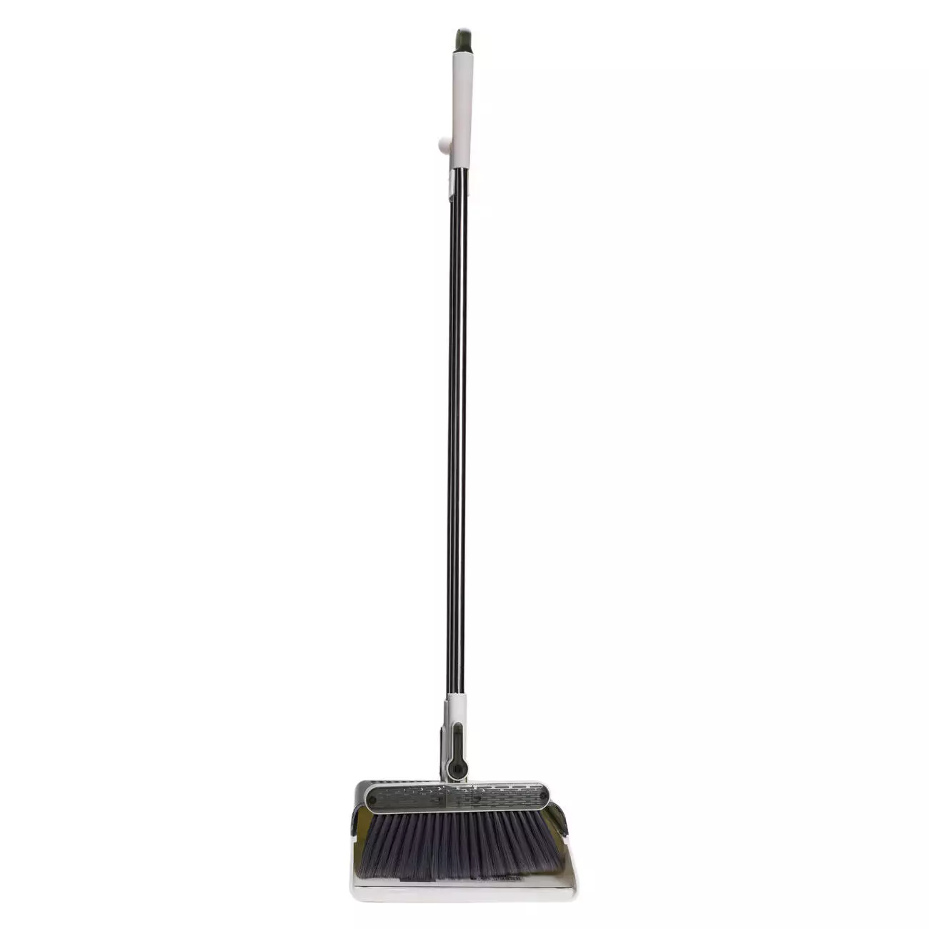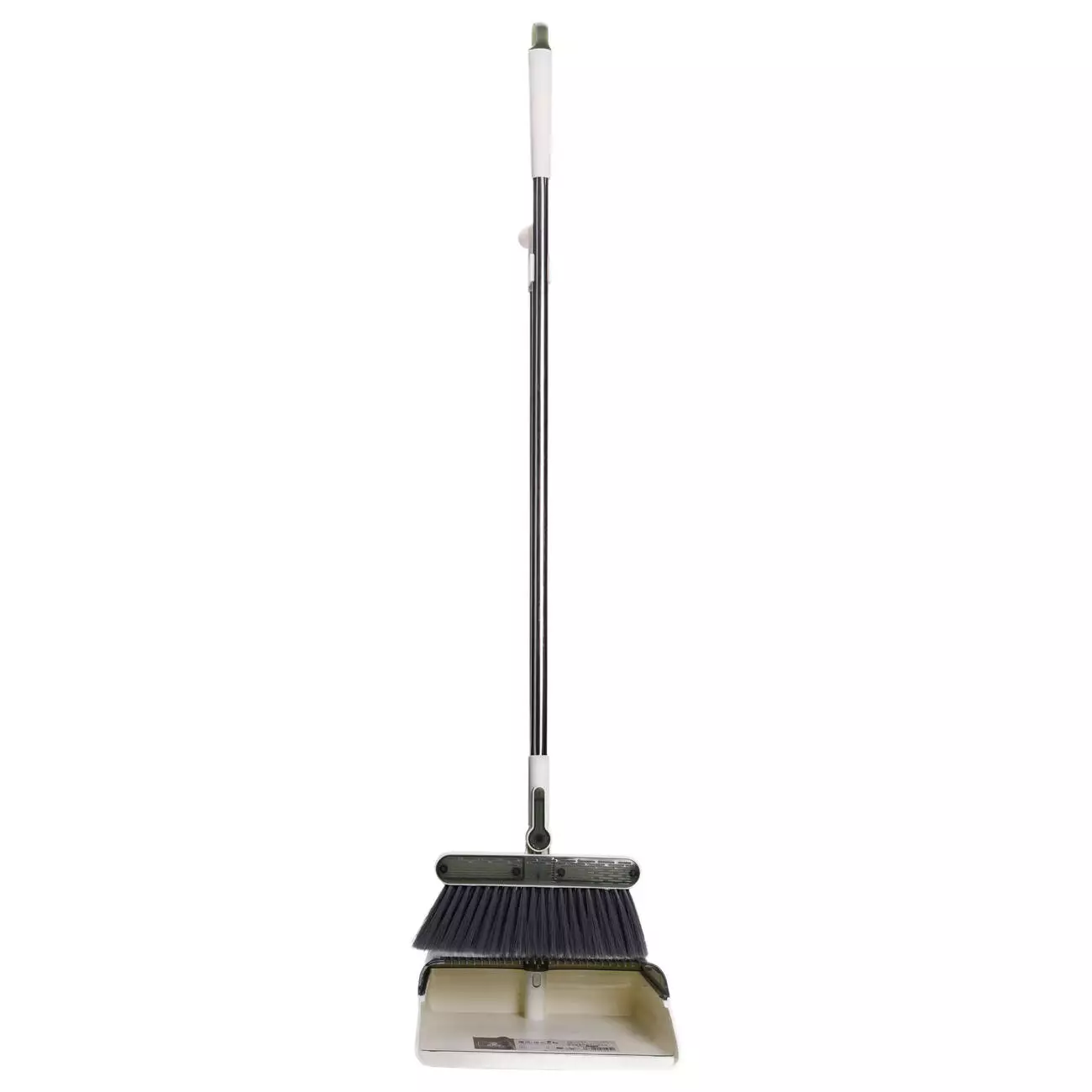 Совок зроблений із міцного пластику та оснащений бортиком, який щільно прилягає до підлоги, запобігаючи висипанню сміття. Додатково передбачені зубці для очищення щетини віника, а також тримач, що дозволяє фіксувати комплект у вертикальному положенні. Це робить набір компактним і зручним у зберіганні.