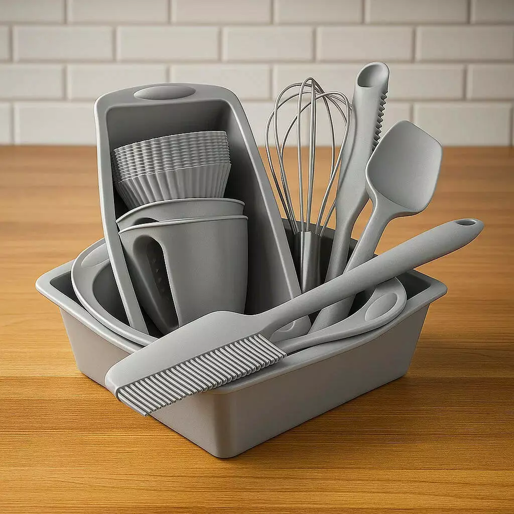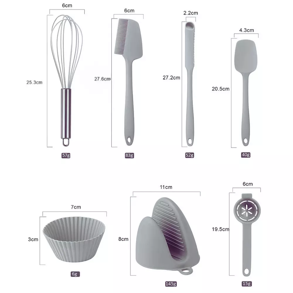 комплект кухонного приладдя в сірому кольорі. Підходить для