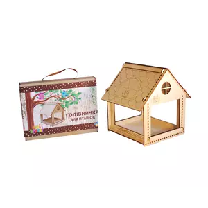 Набір для збірки "Годівничка" - в комплект входять фанерні деталі з яких збирається годівниця-будиночок для птахів, на деталях нанесенні стилізована гравірування.