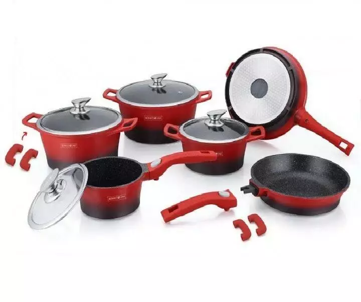 Склад комплекту3 каструлі, сковорода, сотейник, ківш, 4 кришки