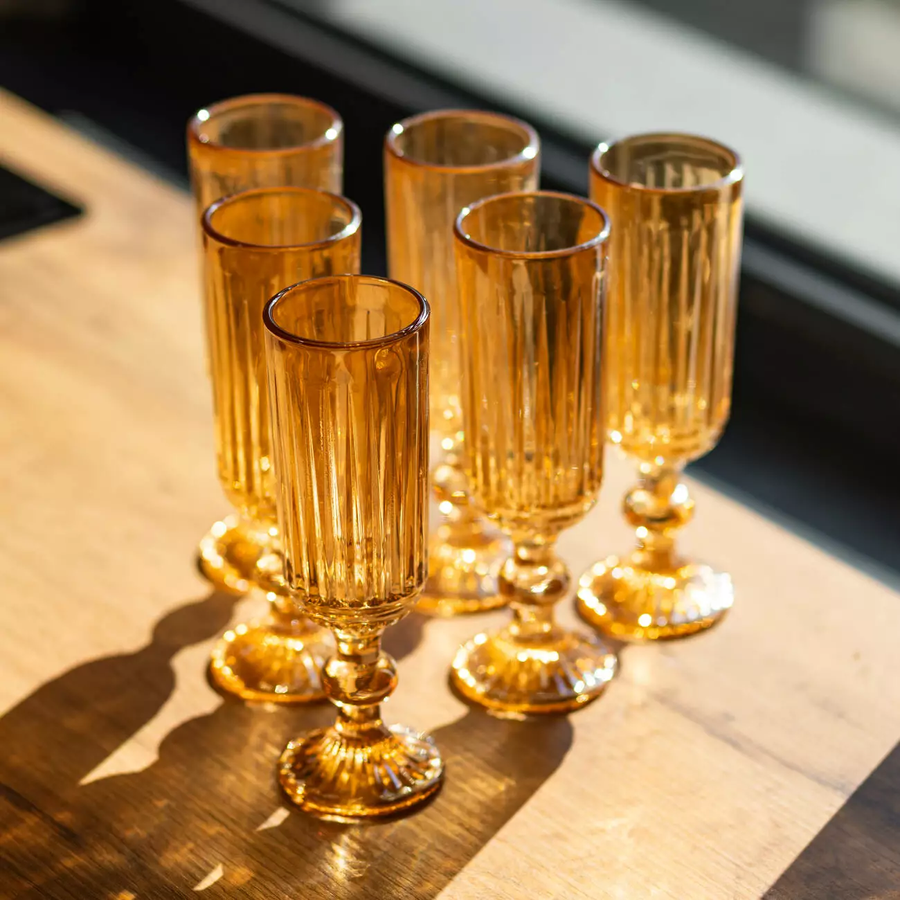 Ребриста фактура забезпечує не лише декоративний ефект, а й зручність утримання келиха. Завдяки товстим стінкам посуд стійкий до механічного впливу, що робить його придатним як для повсякденного використання, так і для сервірування святкового столу. Прозоре скло дозволяє оцінити колір і гру бульбашок у шампанському.
