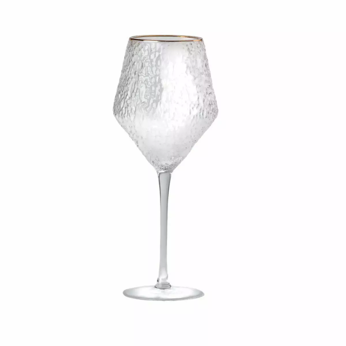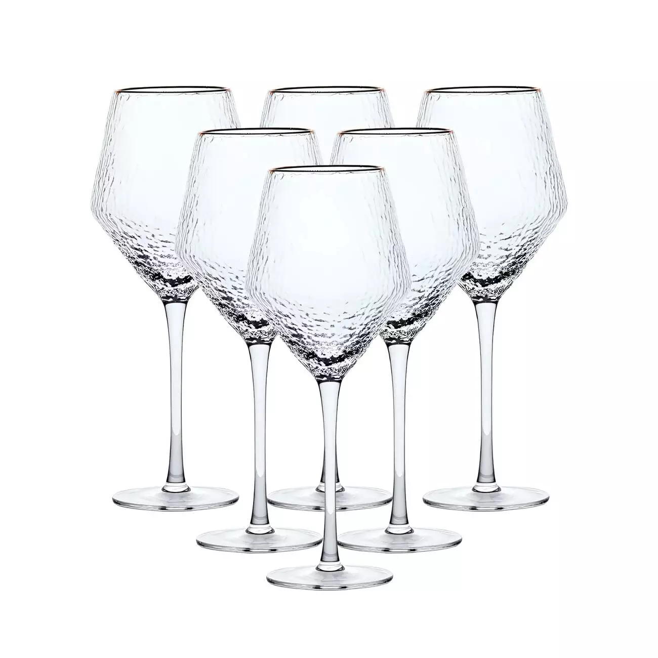 Набір келихів для вина Stunning включає шість великих фактурних келихів, які поєднують у собі сучасний стиль і вишукану елегантність. Виготовлені зі скла з текстурованою поверхнею, вони створюють цікаву гру світла та додають особливий акцент сервування столу. Золотий обідок підкреслює витонченість келихів, надаючи їм розкішного вигляду, що ідеально підходить для святкових або урочистих подій.