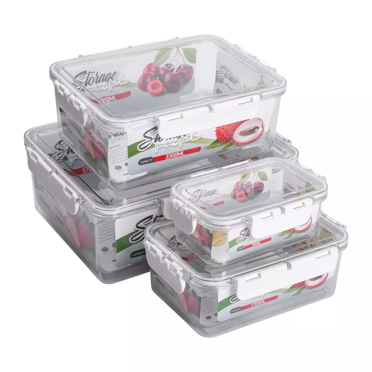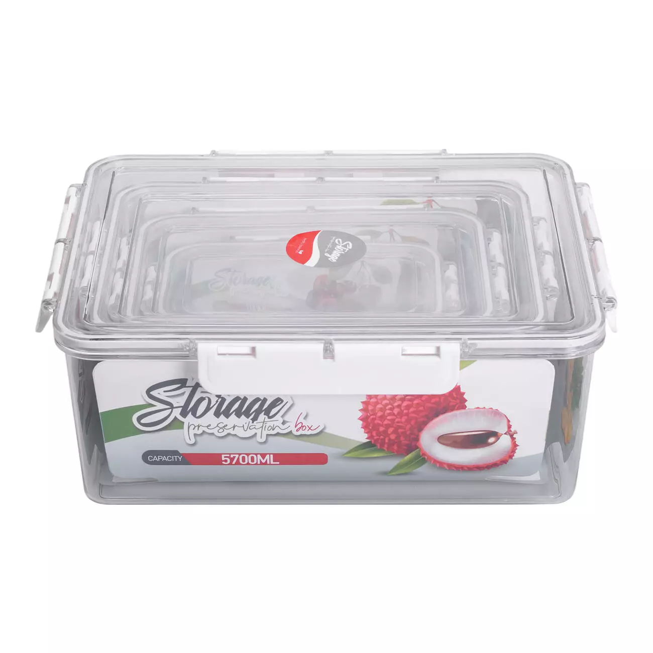 Набір із 4 прямокутних пластикових контейнерів призначений для зберігання та транспортування продуктів. Контейнери мають компактну конструкцію — складаються один в один, що дозволяє економити місце при зберіганні. Кришки оснащені надійними фіксаторами, які забезпечують герметичність і захищають вміст від протікань та сторонніх запахів. Завдяки прямокутній формі контейнери зручно розміщуються у холодильнику або сумці.