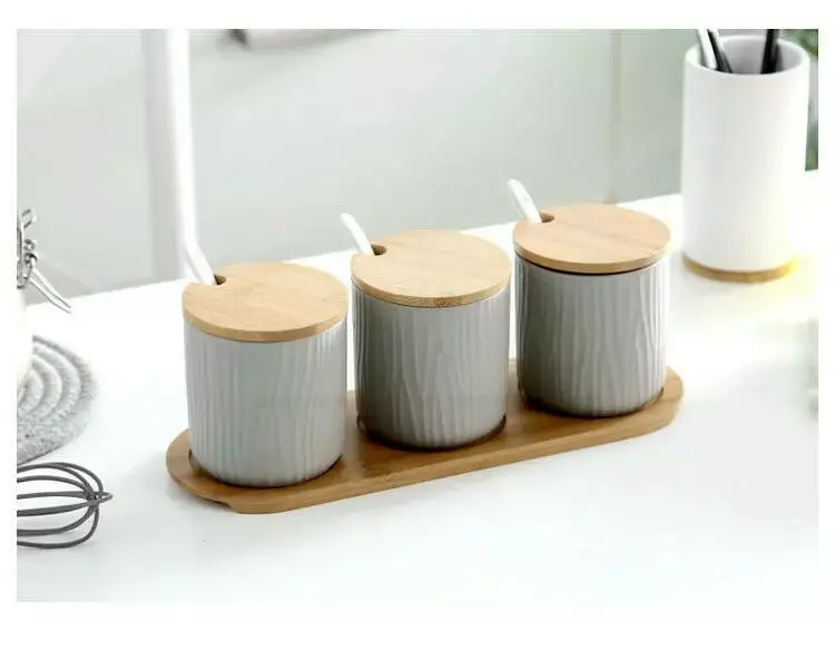 Набір з трьох керамічних вазочек для зберігання сипучих підходить