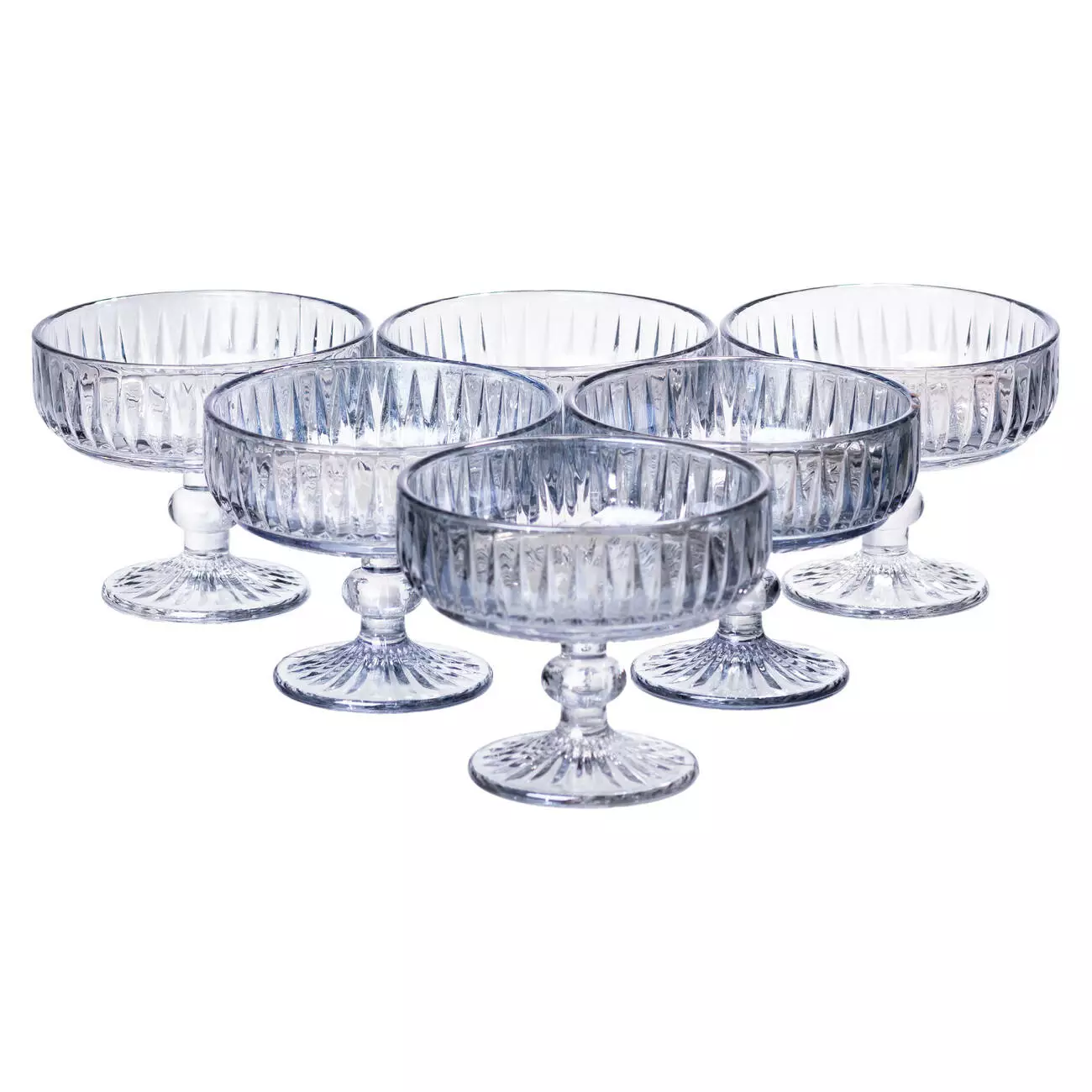 Набір креманок на ніжці з прозорого товстого скла призначений для подачі десертів, фруктових салатів, морозива та інших холодних страв. Завдяки універсальному формату набір зручний як для щоденного використання, так і для сервірування столу під час урочистих заходів або свят.