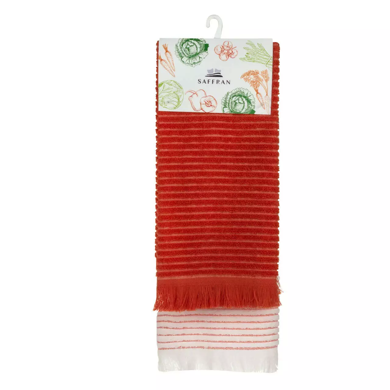 Набір кухонних рушників 340г/м2 30х50см (2шт), колір червоний. Набір махрових рушників виговлений з 100% високоякісної бавовни. Вони не линяють, стійкі до стирання і прання. Якісні рушники радують не тільки шкіру своїм дотиком, а й інтер'єр Вашої кухні. Набір рушників являється найкращим варіантом для подарунку Вашим близьким або знайомим.