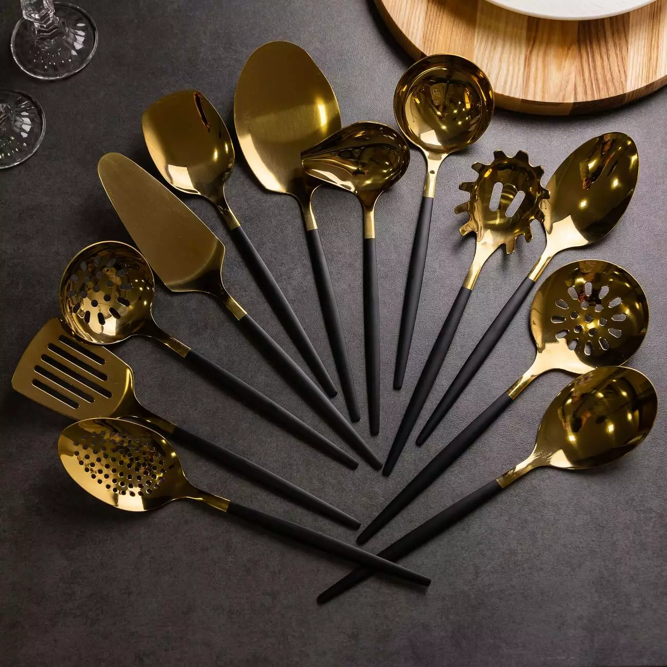 виготовлених із нержавіючої сталі із золотистою основою. Чорні