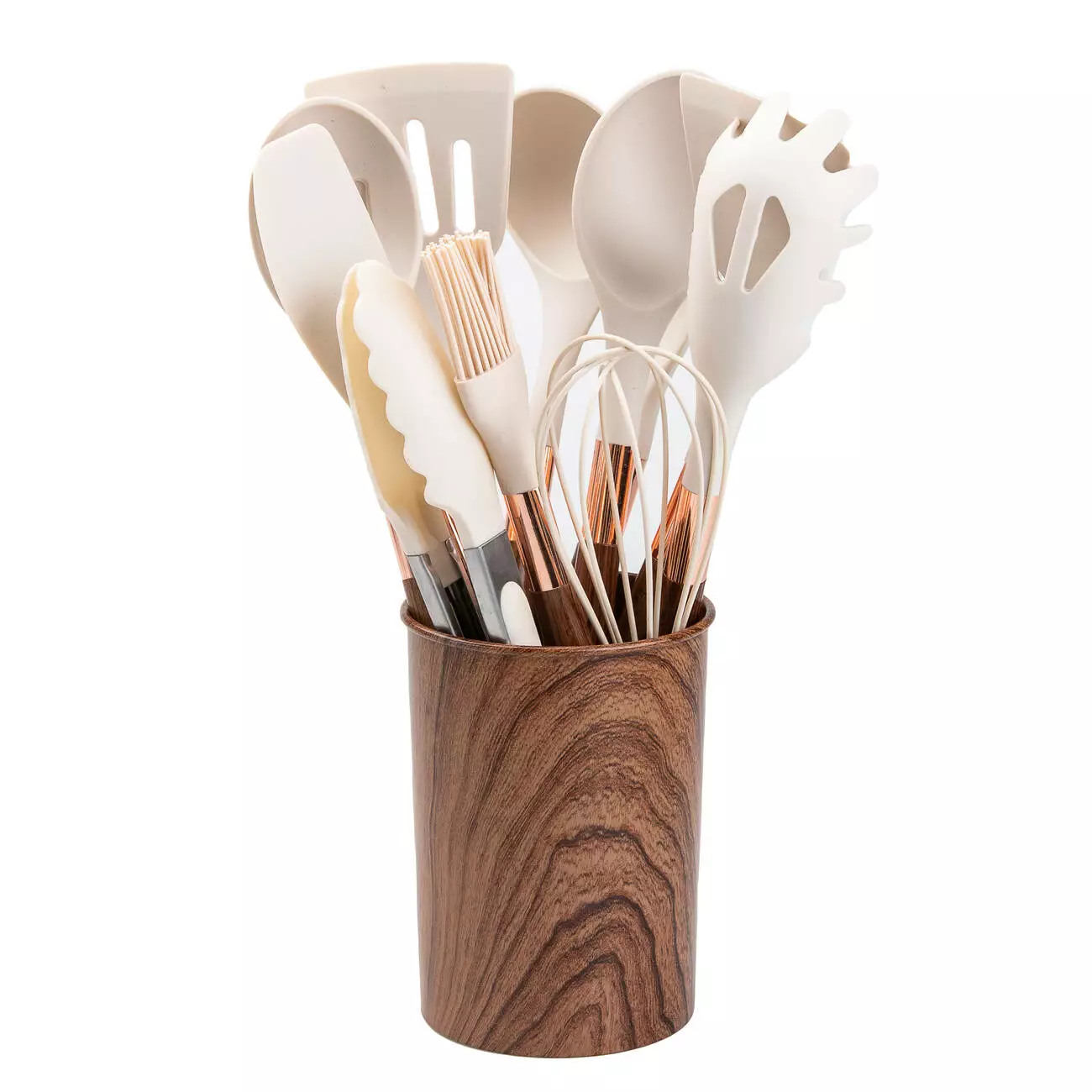 Набір кухонного приладдя з підставкою 11 штук, коричневий