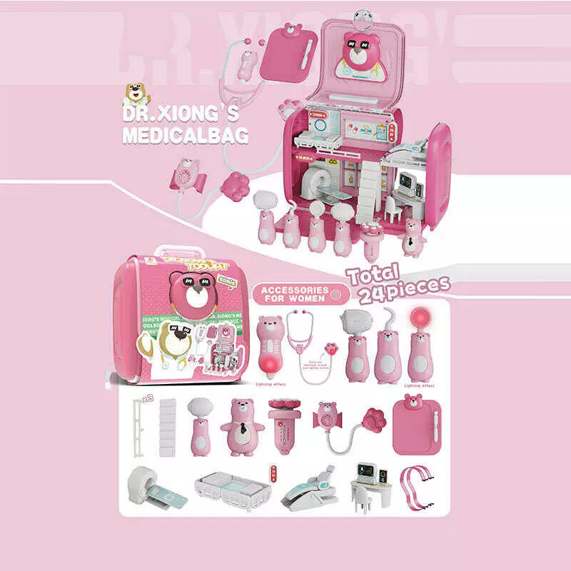 Набір лікаря 527 D-1 (24/2) стетоскоп, дзеркало, молоточок, шприц, термометр, апарат УЗД, гумовий ведмедик, аксесуари, підсвічування, звук, у валізі