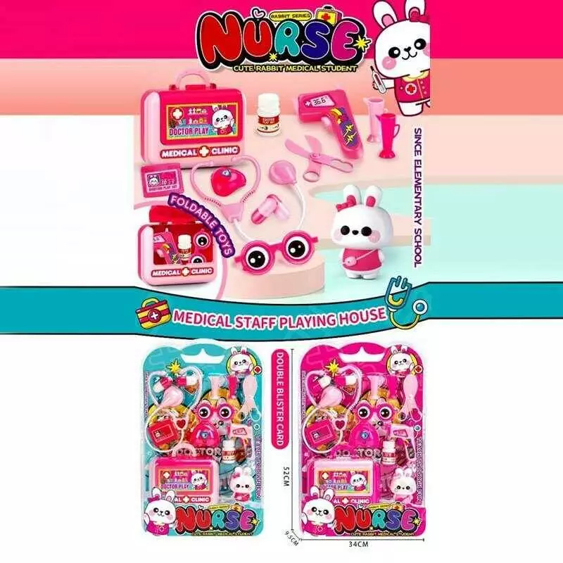 Набір лікаря A 6664 (40/2) 2 види, валіза: 17х7.5х13 см, стетоскоп, термометр, окуляри, ножиці, таблетки, мензурки, пляшечка, маска, бейдж, на листі