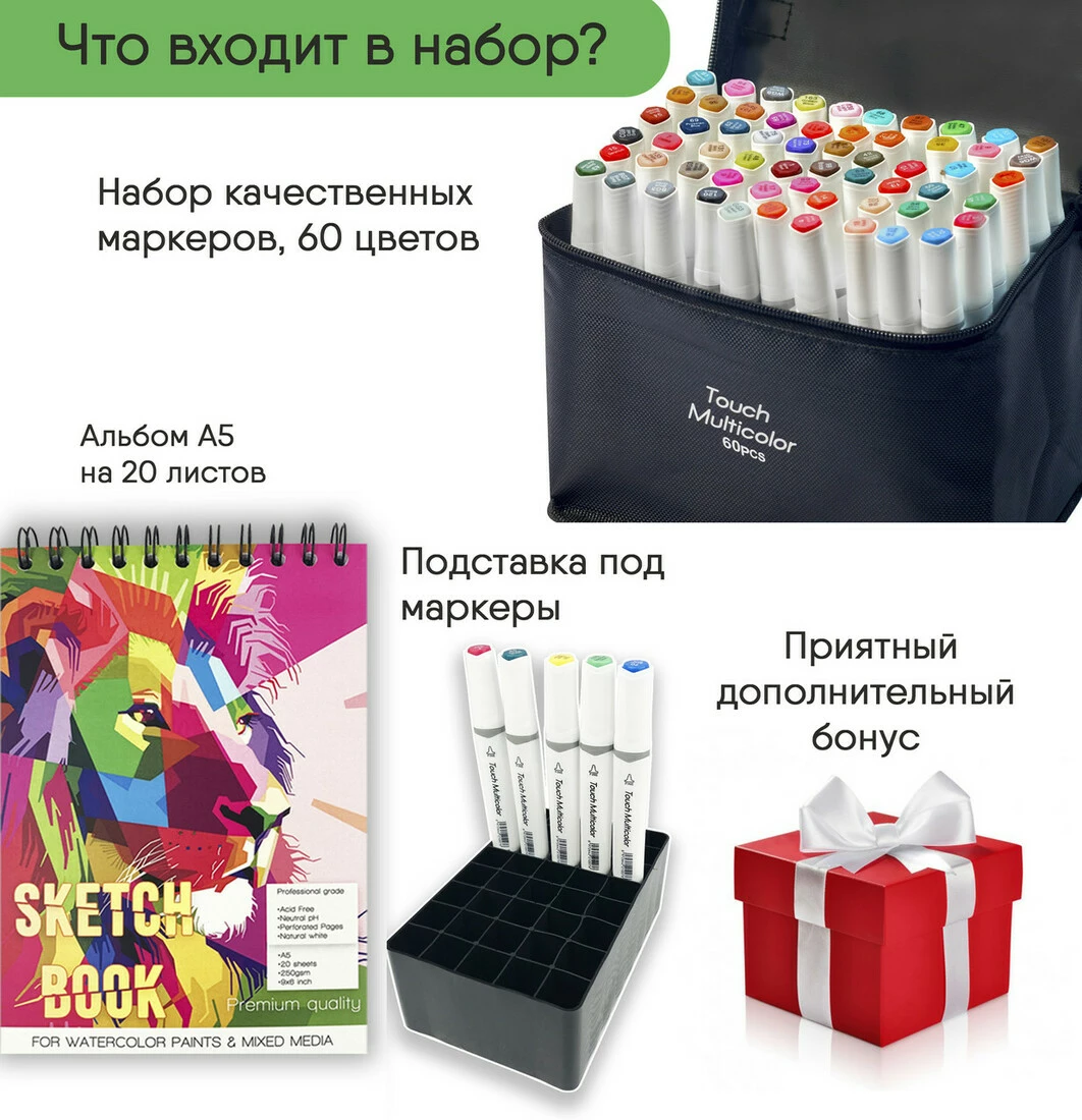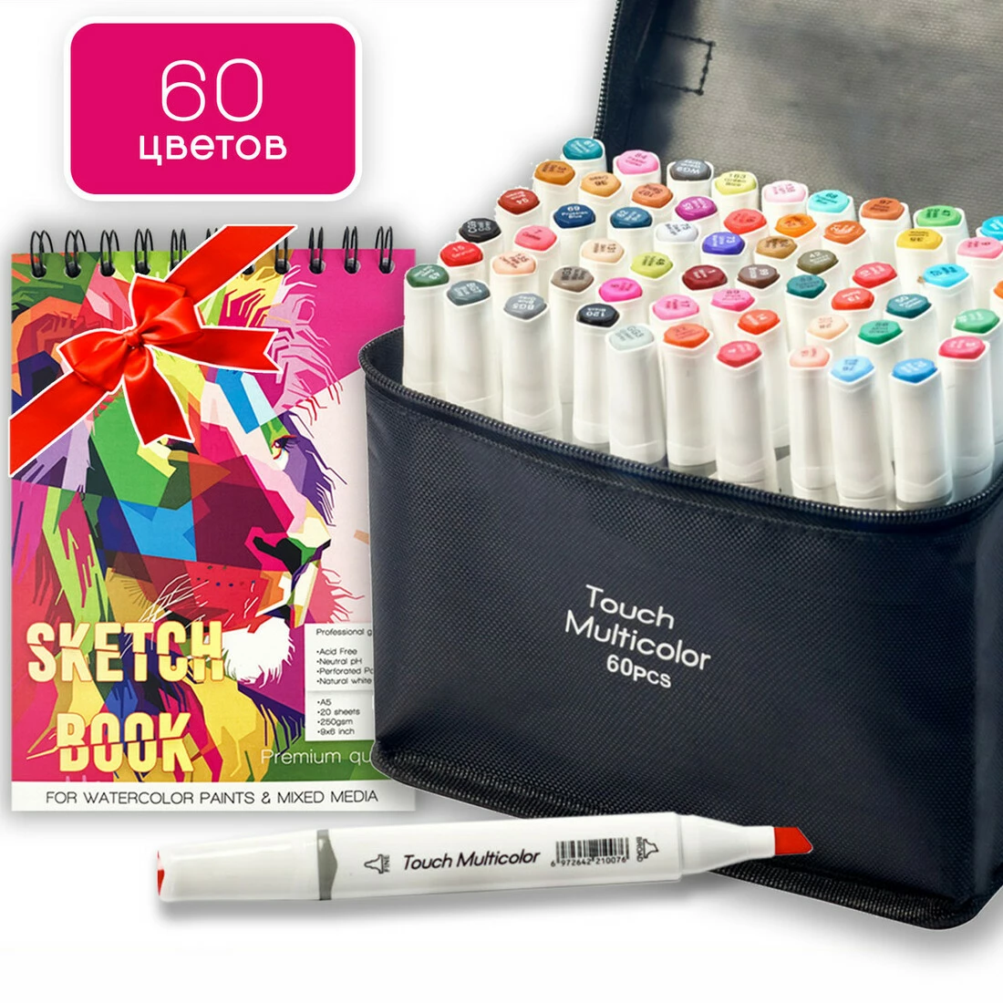 Набір маркерів двосторонніх Touch Multicolor 60 кольорів та Папір