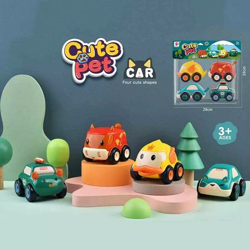 Набір машин 681 A (60/2) 4 шт, кумедні тваринки, інерція, в пакеті