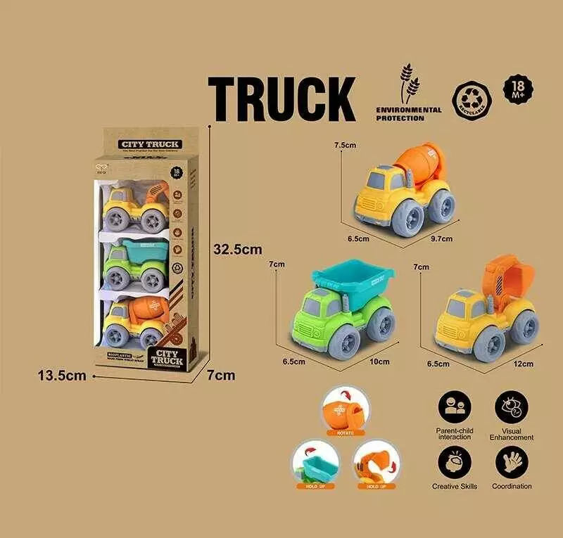 Набір машин 913-1 (96/2) 3 спецтехніки, середня довжина 11 см, рухомі елементи, біопластик, в коробці