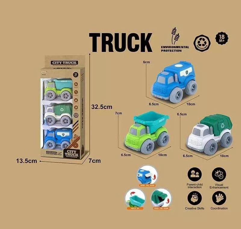 Набір машин 913-5 (96/2) 3 спецтехніки, середня довжина 10 см, рухомі елементи, біопластик, в коробці