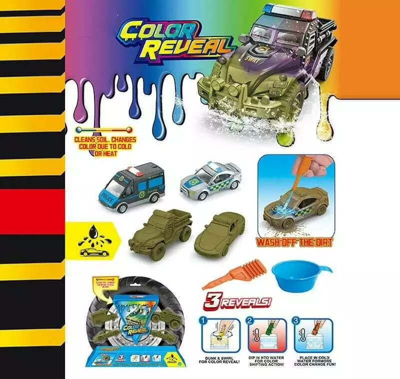 Набір машин SK-J 12 (72) 4 машинки, металопластик, змінюють колір, черпак, піпетка, на листі