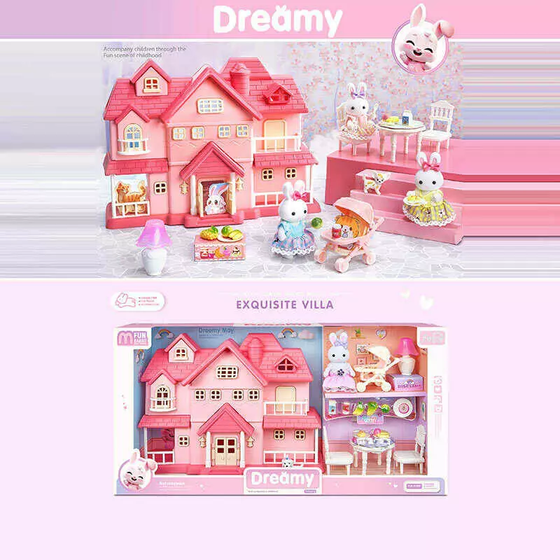 Набір меблів 6718 (18) будиночок, 1 флоксова фігурка, песик, лампа, візочок, стіл та стільчики, продукти, в коробці