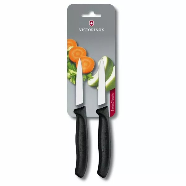 Кухонні ножі Victorinox SwissClassic Paring Set 6.7603.B – швейцарська функціональність для Вашої кухні. Набір складається з двох ножів, призначених для чищення овочів або фруктів. Також легко впораються з іншими ріжучими операціями, що потребують точності.