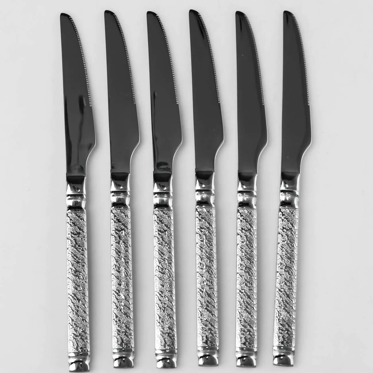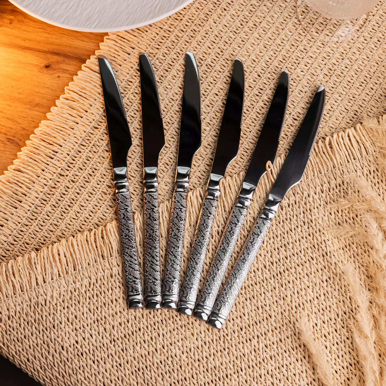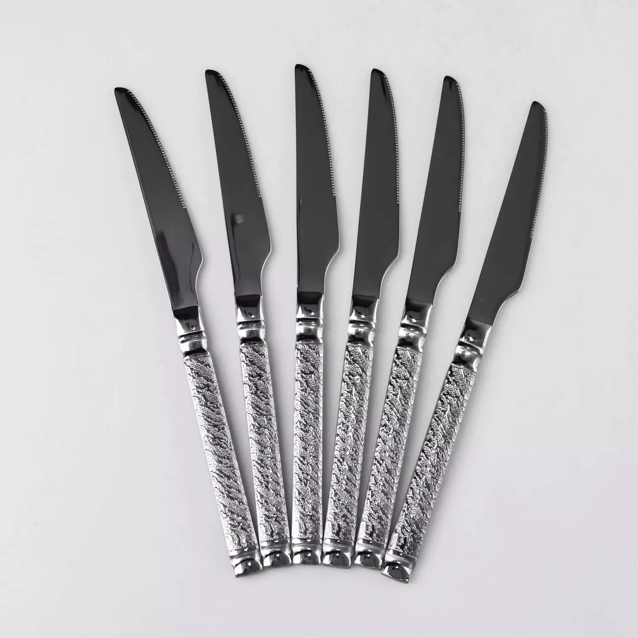 Спеціалізовані столові ножі із серрейторним заточуванням, призначені для нарізування готового м'яса, стейків та інших щільних страв. Модель поєднує в собі функціональність різального інструменту та декоративний дизайн рукояті.