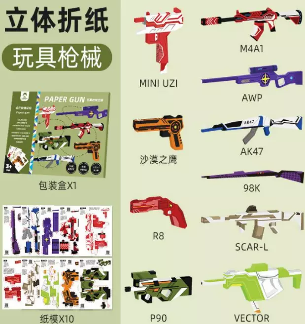 Набір орігамі «Паперова зброя» створений для дітей від 3 років, і
