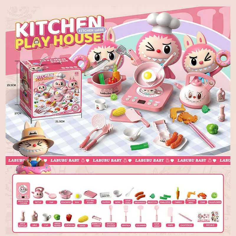 Набір посуду S 20-12 Y (48) плита, каструлька, пательня, чайник, харчові продукти, дощечка, кухонне приладдя, наліпки, в коробці