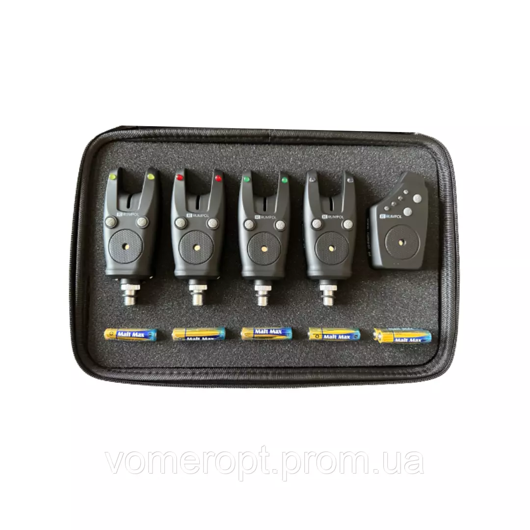 Набір сигналізаторів покльовки з пейджером поставляється в компактному транспортувальних кейсі захищає сигналізатор від можливих механічних пошкоджень під час транспортування і так само зберігає їх від потрапляння небажаної вологи. Комплектація кейсу передбачає чотири сигналізатора і один центральний пейджер. Меню установки сигналізаторів має можливість коригування гучності і додатковий режим без звуку; регулювання тону і чутливості. Вологозахисний Корпус гарантує довговічність і надійність роботи сигналізаторів. Пейджер так має вологозахисний корпус; оснащений режимом вібрації і спеціальними світлодіодами реагують на поклевку.