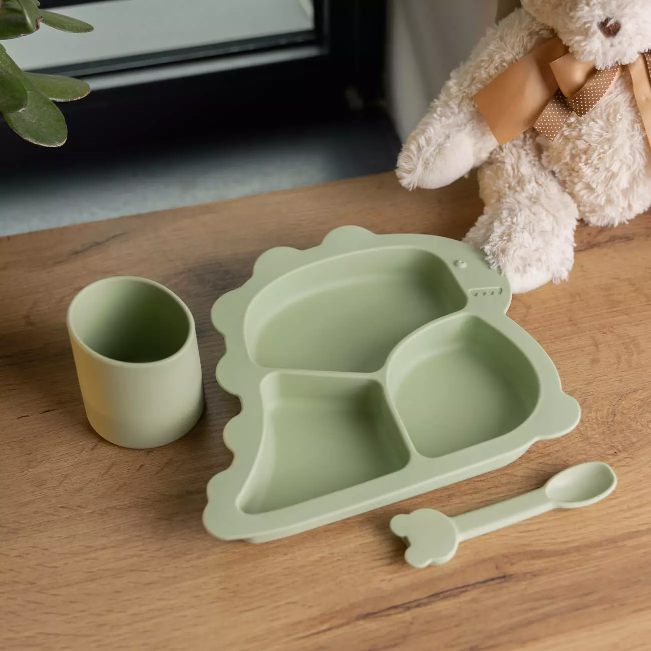 Набір силіконового посуду Динозавр на 3 предмети — це відмінний