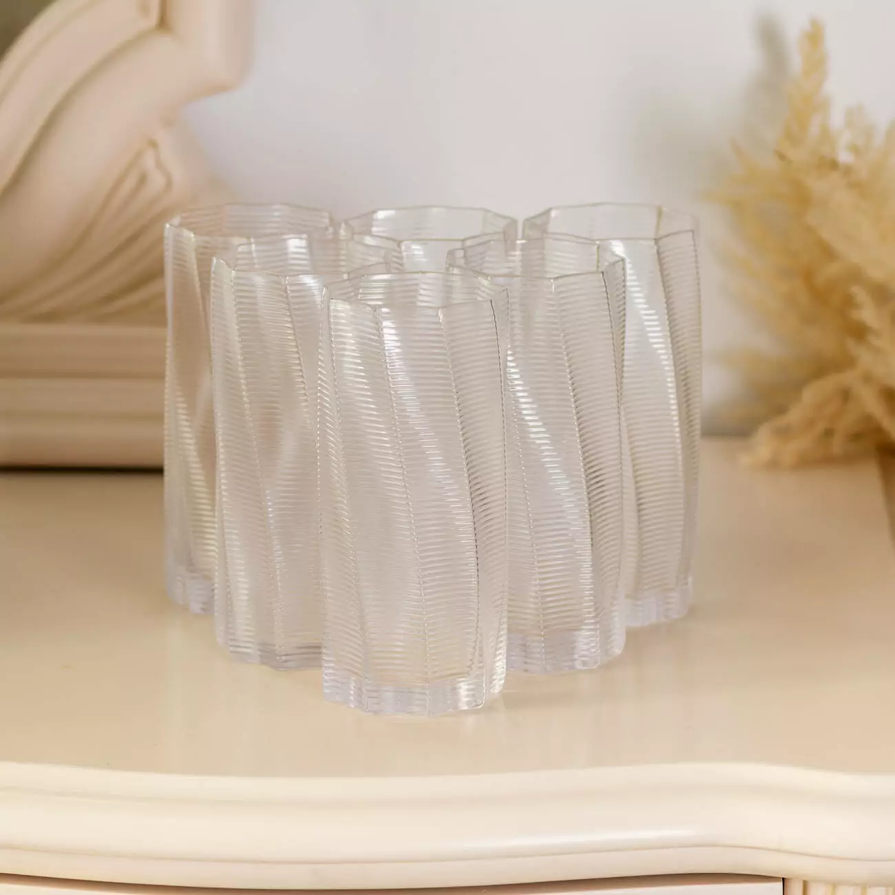 Набір склянок 3-D Print включає шість стильних високих склянок, кожна з яких виготовлена з прозорого скла з унікальним дизайном. Ця фактурна поверхня додає склянкам сучасного вигляду та створює візуальний ефект, який привертає увагу. Завдяки прозорості скла, склянки демонструють кольори напоїв, а 3-D текстура створює цікавий контраст, додаючи глибини їхньому вигляду.