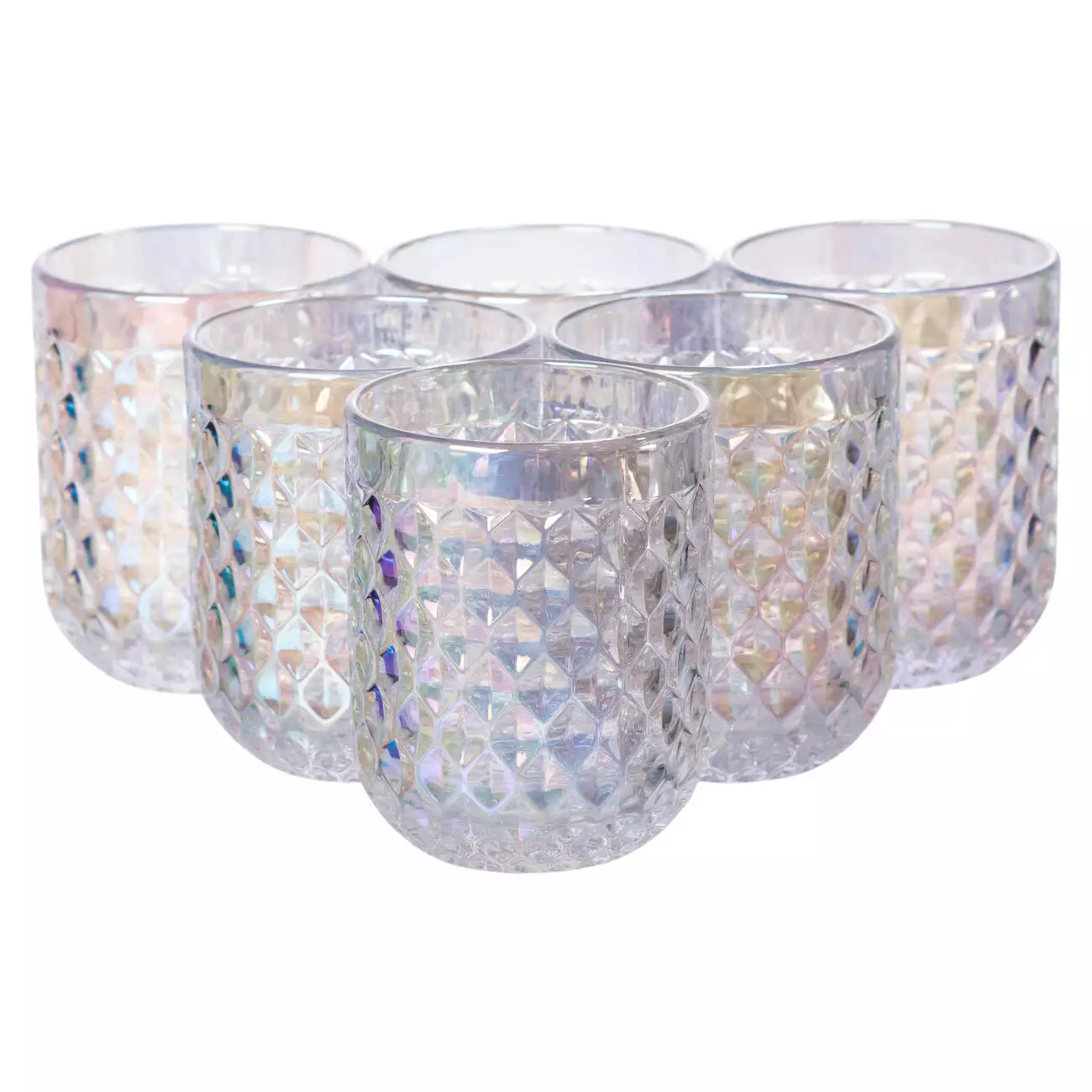 Набір склянок 6 штук по 250 мл із товстогого скла рельєфні, rainbow