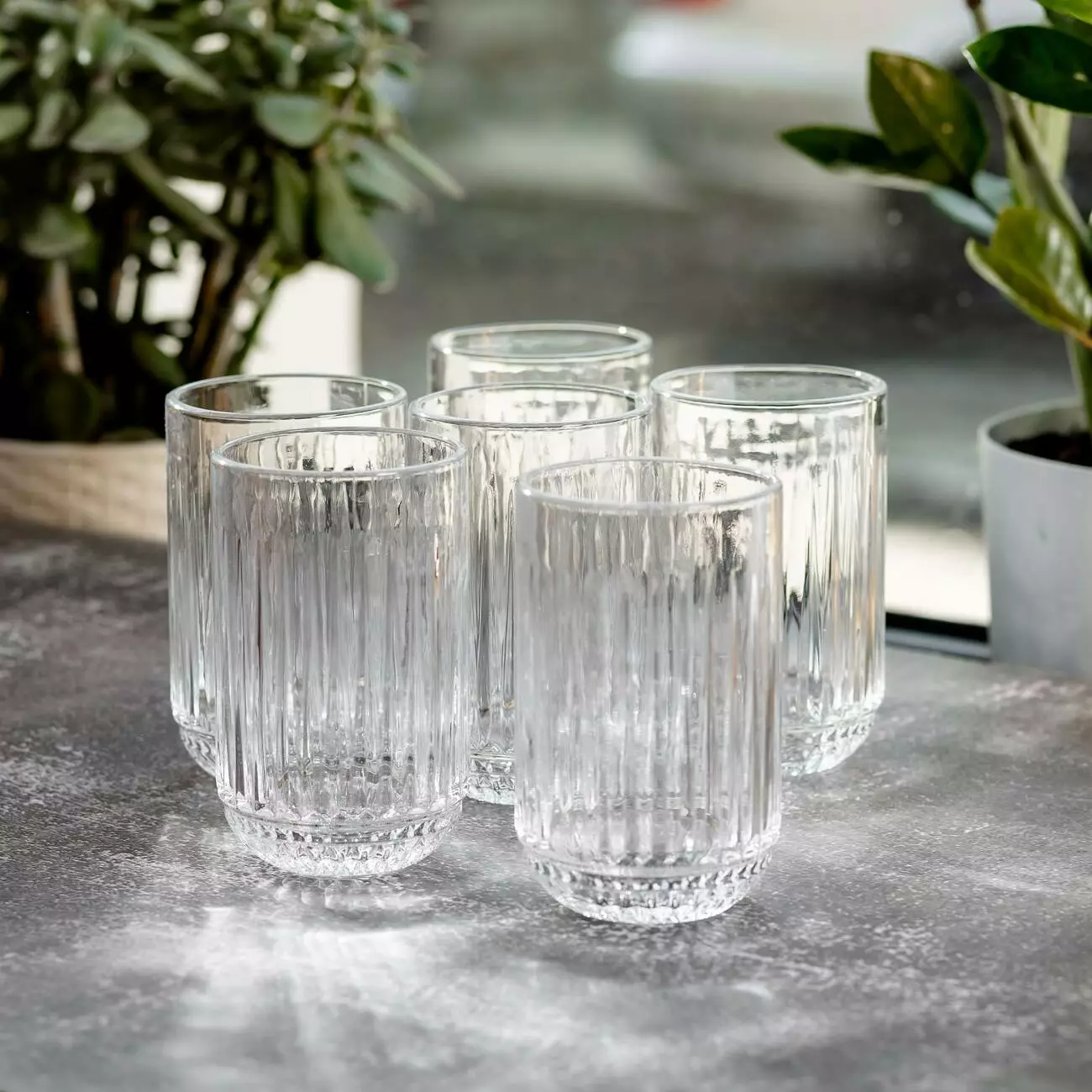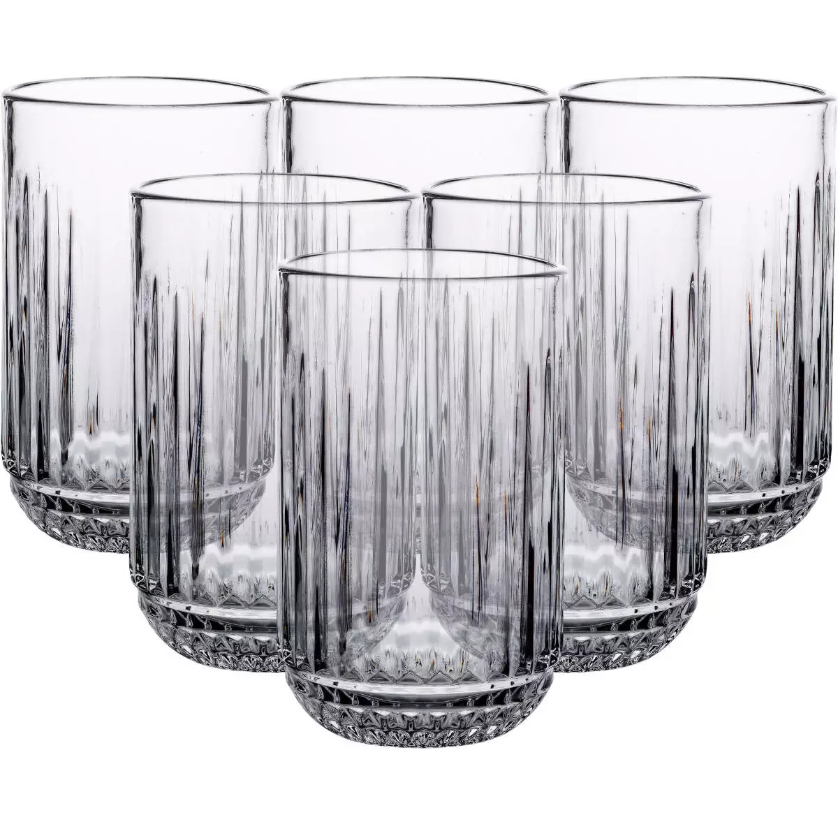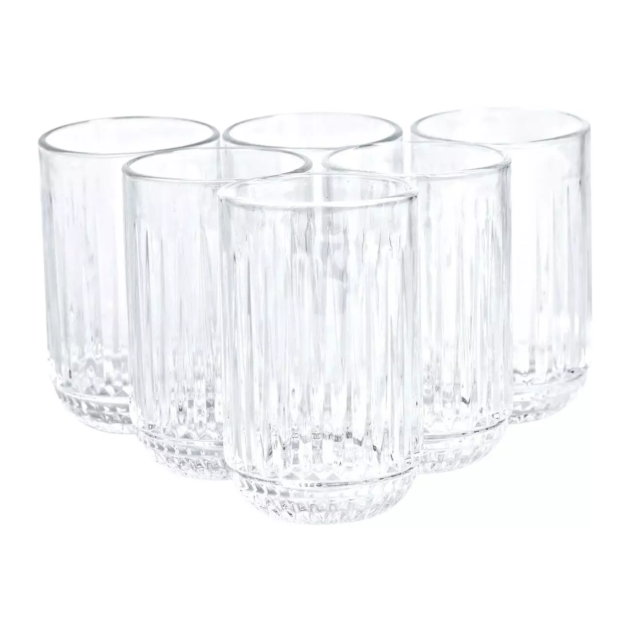 Набір складається з шести склянок, виготовлених із товстого прозорого скла. Завдяки цьому матеріалу вироби мають підвищену міцність і добре витримують щоденне використання. Класичний дизайн і прозорість скла дозволяють легко контролювати рівень напою, а універсальна форма підходить для різних напоїв.